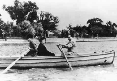 資料圖:1952年9月,毛澤東在中南海劃船。中坐者是程潛先生。 中新社發(fā) 中新社 攝