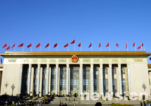 中國共產(chǎn)黨第十七次全國代表大會開幕式定于2007年10月15日9:00在人民大會堂大禮堂舉行。圖為節(jié)日里的人民大會堂。(新華網(wǎng)榮忠霞/攝)