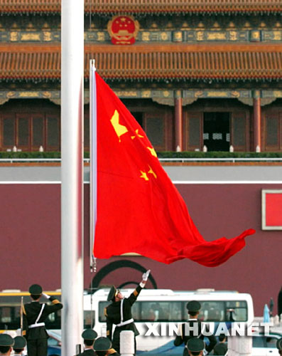 10月15日晨,北京天安門廣場(chǎng)舉行升國旗儀式。當(dāng)日上午,中國共產(chǎn)黨第十七次全國代表大會(huì)將在北京人民大會(huì)堂開幕。 新華社記者楊俊江 攝
