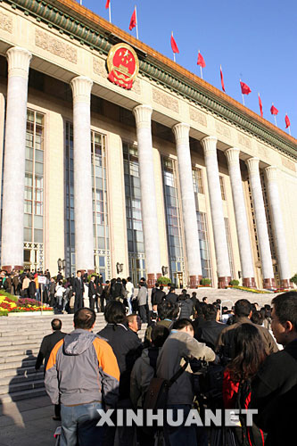 10月15日上午,中國共產(chǎn)黨第十七次全國代表大會將在北京人民大會堂隆重開幕。這是記者在北京人民大會堂前排隊等候入場。新華社記者 劉衛(wèi)兵 攝