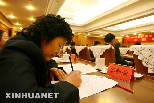10月15日下午,出席十七大的各代表團圍繞胡錦濤同志向大會所作的報告進行了分組討論。這是十七大代表、安徽省阜陽市公交乘務員答朝榮仔細聽取代表的發(fā)言,并認真記錄。 新華社記者 劉衛(wèi)兵攝