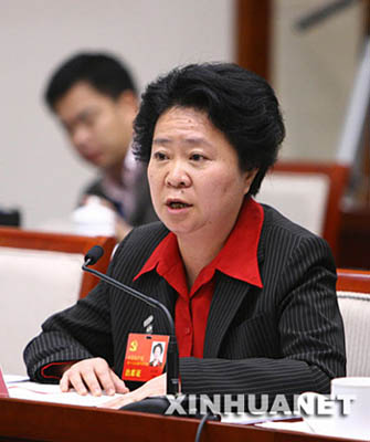 十七大湖北代表團(tuán)代表張岱梨在發(fā)言中說(shuō),胡錦濤同志在十七大上所作的報(bào)告全面、系統(tǒng)、深刻地闡述了科學(xué)發(fā)展觀的科學(xué)內(nèi)涵和精神實(shí)質(zhì),體現(xiàn)了以人為本的執(zhí)政理念。新華社記者鞠鵬 攝