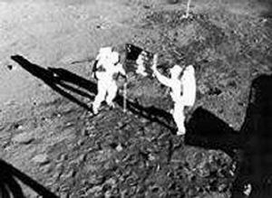 還有人指出,其他登月照片“也有問題”。在另一張照片中,航天員影子長短不一,顯示現(xiàn)場有超過一個(gè)的光源。而月球表面只有太陽一個(gè)光源,而且不是近距離照射,所以另外一個(gè)光源必定來自拍景用的射燈!另外,在這幅照片中,兩名登陸月球的宇航員都在照片之中,但當(dāng)時(shí)登陸月球的只有兩人,而在照片拍攝的這個(gè)角度,很難想像會(huì)是自動(dòng)相機(jī)所攝,況且當(dāng)時(shí)登月飛船根本沒帶自動(dòng)相機(jī),那么是誰拍攝下的“合影”呢?———質(zhì)疑者開玩笑說是“上帝”或者“外星人”所拍。