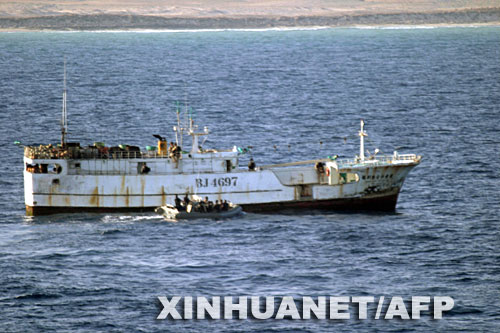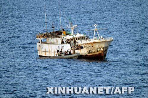11月5日,在索馬里沿海被海盜劫持的中國(guó)臺(tái)灣漁船停泊在印度洋海域。新華社/法新