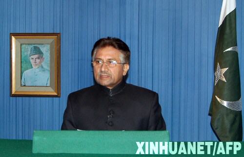 11月3日,巴基斯坦總統(tǒng)穆沙拉夫在伊斯蘭堡發(fā)表講話。穆沙拉夫當日宣布在全國實行緊急狀態(tài)并同時頒布了一項臨時憲法令。他在4日凌晨向全國發(fā)表電視講話說,實行緊急狀態(tài)目的在于保護國家利益,打擊日益增多的恐怖活動,并阻止國家經(jīng)濟下滑。新華社/法新
