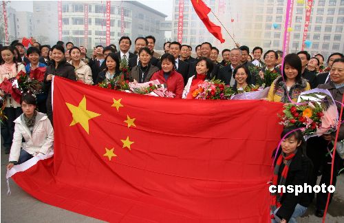 11月7日下午,中國(guó)首顆月球探測(cè)衛(wèi)星研制單位——中國(guó)空間技術(shù)研究院舉行歡慶活動(dòng),慶?!版隙鹨惶?hào)”衛(wèi)星成功進(jìn)入工作軌道,歡迎該院執(zhí)行“嫦娥一號(hào)”飛行任務(wù)的科研人員凱旋。