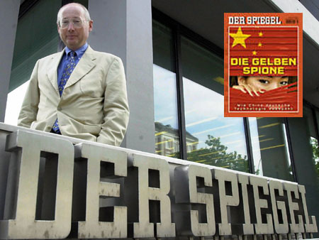 如果在德華人決定起訴,《明鏡》總編輯施蒂芬·奧斯特將成為被告之一。小圖為刊登“黃色間諜”一文的雜志封面。