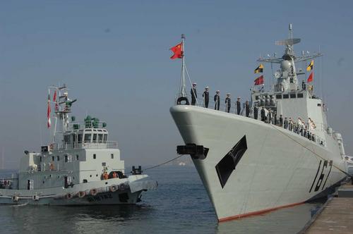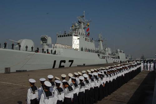 2007年11月21日上午,中國(guó)海軍“深圳”號(hào)導(dǎo)彈驅(qū)逐艦(舷號(hào)167)從廣東湛江軍港啟程,出訪日本。圖片來源:CFP