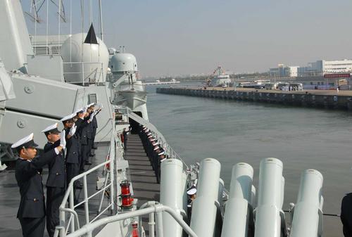 2007年11月21日上午,廣東湛江,出訪日本的“深圳”號(hào)導(dǎo)彈驅(qū)逐艦離開湛江碼頭。圖片來源:CFP