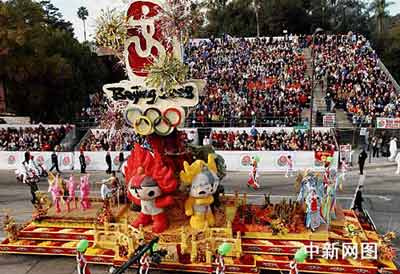 玫瑰花車游行是美國迎接新年最盛大的活動之一,今年全球有五億多人觀賞現(xiàn)場電視直播。代表北京奧運的花車第一次在海外展現(xiàn)中國奧運年的風(fēng)采,極富歷史意義,最受矚目。