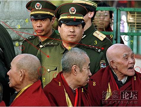 9.右邊喇嘛光線照射頭頂,與公安身上的光線不符;