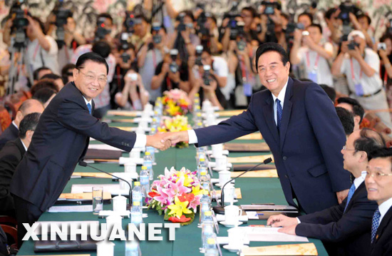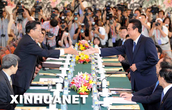 陳云林說,今年3月兩岸關(guān)系發(fā)生了重大的積極變化。根據(jù)?;鶗?月26日和海協(xié)會5月29日的相互函電,今天,在兩岸同胞的熱切期盼中,中斷近10年的兩會協(xié)商談判正式恢復(fù)了。