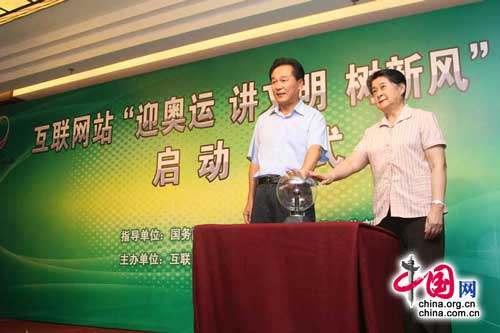 中國(guó)日?qǐng)?bào)網(wǎng)環(huán)球在線消息:互聯(lián)網(wǎng)站“迎奧運(yùn)、講文明、樹新風(fēng)”活動(dòng)啟動(dòng)儀式6月25日在京舉行。這項(xiàng)由互聯(lián)網(wǎng)業(yè)界廣泛參與的活動(dòng),旨在進(jìn)一步促進(jìn)文明辦網(wǎng)、文明上網(wǎng),遏制網(wǎng)上低俗之風(fēng),以社會(huì)主義榮辱觀引領(lǐng)網(wǎng)絡(luò)風(fēng)尚,為北京奧運(yùn)會(huì)成功舉辦營(yíng)造良好的網(wǎng)絡(luò)環(huán)境。國(guó)務(wù)院新聞辦公室副主任蔡名照、中國(guó)互聯(lián)網(wǎng)協(xié)會(huì)理事長(zhǎng)胡啟恒出席啟動(dòng)儀式并講話。