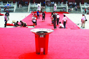 昨日下午,工人們正在天壇布置采火儀式現(xiàn)場(chǎng)。追星 攝
