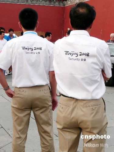 奧運(yùn)會(huì)期間北京有許多改變與調(diào)整,就連安保人員都穿起白襯衫、卡其褲,與以往偏向深色系的服裝相比,顯得十分清新。中新社發(fā) CNAsports 攝