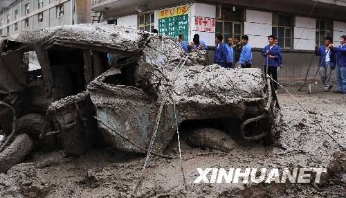 這是被泥石流沖毀的車輛(9月8日攝)。(新華社記者江宏景攝)