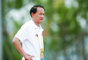 出現(xiàn)在球場邊的謝亞龍經(jīng)常兩手叉腰,奧運(yùn)會(huì)期間,“叉腰肌”成了流行語。三個(gè)月后,不知道謝主席將在哪一站停留?圖/CFP