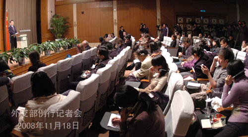 中國日報網(wǎng)環(huán)球在線消息:2008年11月18日,外交部發(fā)言人秦剛舉行例行記者會,就胡錦濤主席出席亞太經(jīng)合組織第十六次領(lǐng)導(dǎo)人非正式會議、中美戰(zhàn)略經(jīng)濟(jì)對話等答問。