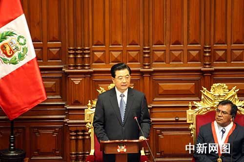 在秘魯最高立法機構(gòu)所在地,胡錦濤發(fā)表了面向整個拉美地區(qū)的重要演講。演講吸引了200多位秘魯國會議員、政府官員和外國使節(jié)。