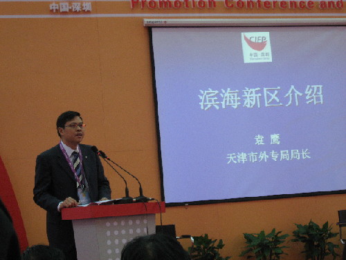 天津市外專局局長在展會上介紹濱海新區(qū)成果,招攬人才