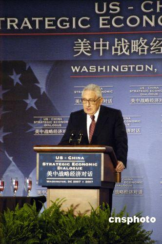 當?shù)貢r間5月22日上午,第二次中美戰(zhàn)略經(jīng)濟對話在美國華盛頓開幕,中國國務(wù)院副總理吳儀和美國財政部長保爾森作為兩國元首特別代表,共同主持對話會。中美兩國外交關(guān)系的奠基人之一,尼克松時代的美國國務(wù)卿基辛格博士出席對話開幕式并致詞。