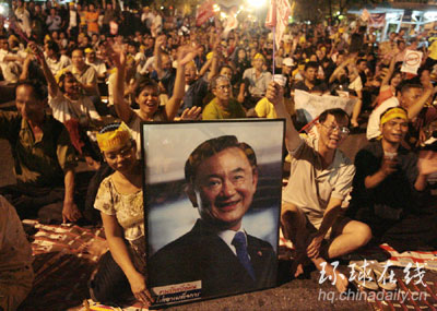 今年5月30日,泰國憲法法庭宣布說,泰愛泰黨被控在去年4月的議會選舉中舞弊的罪名成立,并命令其解散,包括他信在內(nèi)的該黨111名黨員在未來5年內(nèi)被禁止涉足政壇。泰愛泰黨代黨首乍都隆·采盛隨即抗議該黨沒有得到公平審判,批評法庭依據(jù)當(dāng)權(quán)者的好惡判斷是非。