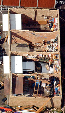 據(jù)英國《每日郵報(bào)》報(bào)道,這次風(fēng)災(zāi)是從當(dāng)?shù)貢r(shí)間早上6時(shí)20分左右開始的,每個(gè)龍卷風(fēng)僅持續(xù)90秒,風(fēng)速達(dá)每小時(shí)65英里(約合105公里)。
