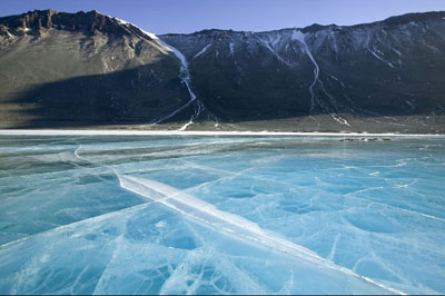 夏天時(shí)南極的冰層變薄,下面的海水清晰可見。