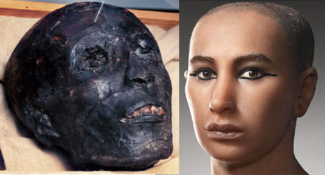 圖坦卡蒙的頭部和相貌復(fù)原圖。