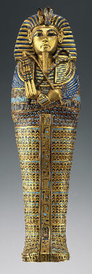 埃及國(guó)家博物館展出的圖坦卡蒙木乃伊的黃金石棺中的一層。