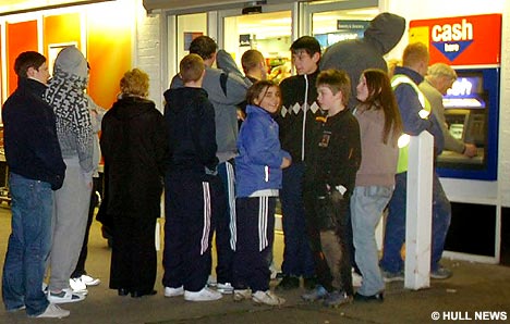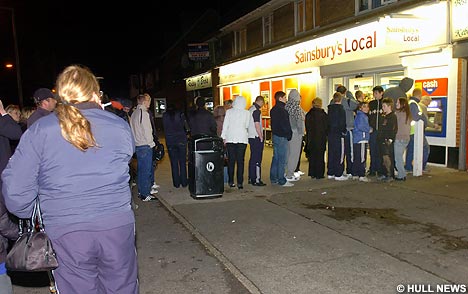 英國(guó)赫爾市排隊(duì)取款的居民。