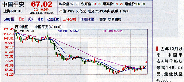 中國日報網(wǎng)站環(huán)球在線消息:中國平安保險(集團)股份有限公司(以下簡稱中國平安)不久前公布的年報顯示:公司董事長馬明哲去年的年薪為稅前6616萬元,平均每天薪酬18.12萬元,創(chuàng)下了國內(nèi)高管年薪的最高紀錄。而中國平安的股價則由頂峰時的149.28元一路下滑,最低曾跌至48.30元。一時間,損失慘重的股民們對如此強烈的反差議論紛紛。