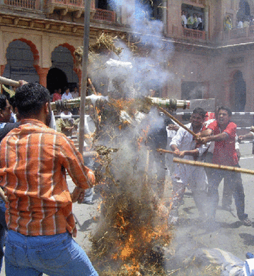 上周,示威者與警察發(fā)生沖突,警察向示威者開了火。短短幾天內(nèi),已經(jīng)有36名示威者喪生。在印度拉賈斯坦邦的兩個瞿折羅人占多數(shù)的城鎮(zhèn),示威者用被警察打死的尸體封鎖道路,聲稱政府不讓步,絕不火化。印度軍隊和警察包圍了這兩個城鎮(zhèn)。