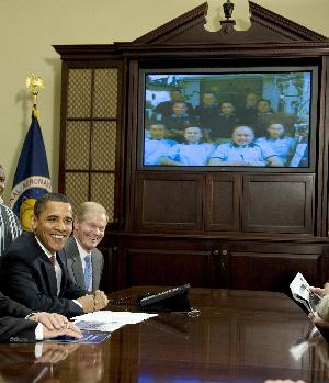 中國日報網環(huán)球在線消息:據美國媒體報道,當地時間3月24日,美國總統(tǒng)奧巴馬在白宮與距離地面360公里的國際空間站上的10名宇航員進行視頻對話。奧巴馬在這次活動中非常興奮,提出了不少很有趣的問題,稱自己見到宇航員就像個“大孩子”。據報道,奧巴馬是迄今為止美國歷史上第五位跟宇航員對話的總統(tǒng)。