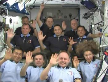國際空間站上的10名宇航員,右下方女宇航員的頭發(fā)吸引了奧巴馬的注意
