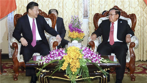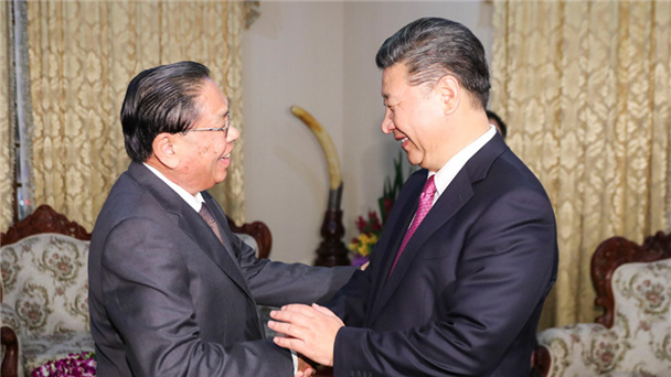 中共中央總書記、國家主席習(xí)近平13日在萬象會見前老撾人民革命黨中央委員會總書記、國家主席朱馬里。