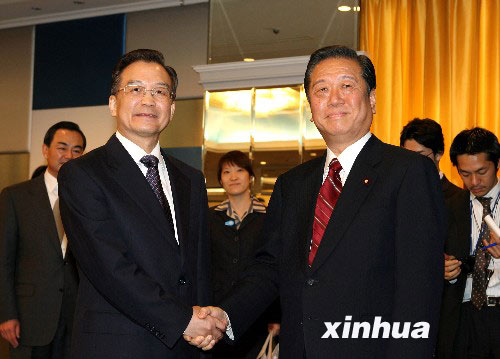 4月12日,中國國務(wù)院總理溫家寶在東京會見日本民主黨黨首小澤一郎