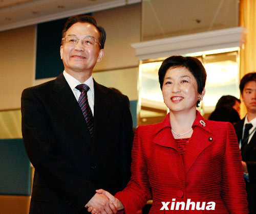 4月12日,中國國務(wù)院總理溫家寶在東京會見日本社民黨黨首福島瑞穗