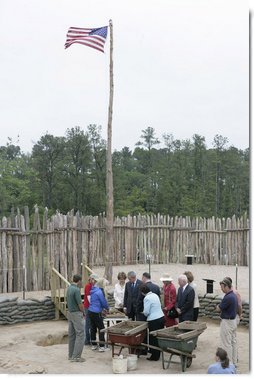 We're honored to be in Jamestown on this historic day. We appreciate the opportunity to tour the beautiful grounds here. I would urge our fellow citizens to come here, see the fantastic history that's on display. I think you'll be amazed at how our country got started. And I want to thank all the good folks who are working to preserve the past for your hard work, and I appreciate the fact that you spent a lot of time educating our fellow citizens.