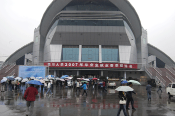 近日,四川大學2007年畢業(yè)生春季“雙選會”在望江校區(qū)體育館隆重舉行。本次“雙選會”是我校為2007屆畢業(yè)生舉辦的第二場大型“雙選會”,共有150余家用人單位,校內(nèi)外畢業(yè)生15000多人次參加了此次活動。