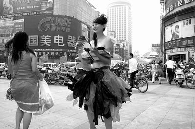 鄭州女大學生穿塑料裙宣傳環(huán)保
