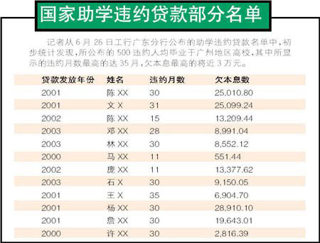 近日,中國工商銀行廣東分行和北京分行在中國高等教育學(xué)生信息網(wǎng)上分別公布了欠款逾期一年的500名和1200名學(xué)生名單,這是我國首次以公告的方式催還助學(xué)貸款,引起社會強(qiáng)烈反響。日前,工行廣州支行給記者發(fā)來的回復(fù)中稱公布名單是有據(jù)可依的。