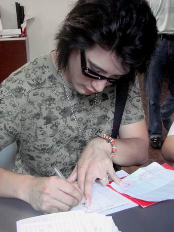 8月28日,06好男蒲巴甲以表演系本科班新生的身份,來(lái)到上海戲劇學(xué)院進(jìn)行新學(xué)年的報(bào)到。和其他普通新生一樣,蒲巴甲抱著一大堆注冊(cè)資料,在一個(gè)個(gè)攤位前填寫(xiě)厚厚的表格。特別架上一副黑框眼鏡的他,說(shuō)這樣可以增加一些書(shū)卷氣。而作為公眾人物,主持人曹可凡,導(dǎo)演胡雪樺以及好男宋曉波和王傳君都一一到場(chǎng)支持,著實(shí)讓上戲校園熱鬧了一把。