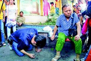 據(jù)圍觀者曾先生說,下午2點(diǎn)半左右他路過街口,就發(fā)現(xiàn)該男子跪著向大媽哭訴,打聽后才得知,大媽姓羅,約60歲左右,羅和丈夫把家里多年積攢的2萬余元拿出來,送孩子去電子校讀書,沒想到兒子竟瞞著他們,將全部的學(xué)費(fèi)用來上網(wǎng)。丈夫氣得一病不起,而她也氣得舊病復(fù)發(fā),雙腿難以動(dòng)彈。
