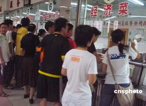 資料圖片:針對學(xué)校食堂飯菜價格受物價影響問題,教育部要求各學(xué)校要穩(wěn)定學(xué)生食堂飯菜價格。在學(xué)校食堂應(yīng)對價格上漲的同時,各地也應(yīng)加大對學(xué)生食堂的政策扶持和經(jīng)費補貼力度。圖為,2007年9月5日,北大學(xué)生們正在學(xué)五食堂吃晚飯。 中新社發(fā) 吳芒子 攝