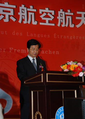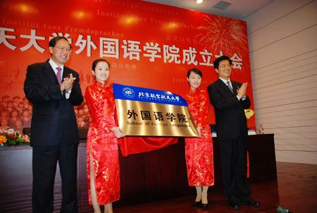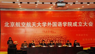 10月28日下午,北京航空航天大學(xué)外國(guó)語學(xué)院在北航新主樓正式掛牌成立。校長(zhǎng)李未院士、校黨委書記杜玉波等領(lǐng)導(dǎo)參加了掛牌儀式。副校長(zhǎng)徐惠彬在儀式上的講話中,代表學(xué)校對(duì)外國(guó)語學(xué)院的成立表示衷心的祝賀,對(duì)該院全體師生提出了殷切的希望,并指出北航響應(yīng)中央提出的教育要優(yōu)先發(fā)展的理念和全面提高教育質(zhì)量、全面推行素質(zhì)教育的工作要求,要把人文學(xué)科,尤其是外語學(xué)科建設(shè)辦好的決心。
