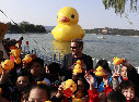 The 18-meter rubber duck on display in Beijing since September has lured increasing numbers of visitors to the capital from around the country.