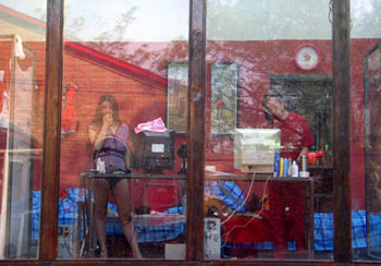| Twoperformance artistsare seen inside a glass house as they participate in a performance in Beijing, April 24, 2007. They will live there for a month, exposing their daily life to visitors. [newsphoto] |