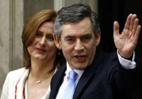 Britain's Prime Minister Gordon Brown and his wife Sarah arrive at 10 Downing Street in London June 27, 2007.