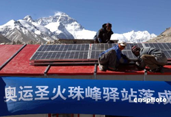 Xue said that besides drawing on experience from previous Olympic flame designs, the technicians have also made a number of innovations to make sure the flame can outlive wind and storms on top of the peak, which stands 8,844.43 m above sea level.